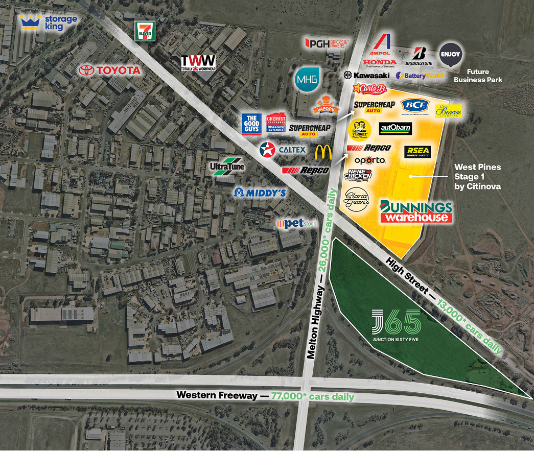 Retailers will be placed at the intersection of High Street, the Western Highway and Melton Highway, presenting unbeatable exposure. According to developer citinova and leasing agents CBRE, businesses can expect to benefit from approximately 77,000 daily car trips on the Western Highway, 26,000 daily trips on the Melton Highway and 13,000 daily trips on High Street as well as 180,000+ new residents over the next 20 years.